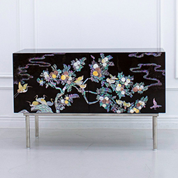 Mother of Pearl Decor Lacquered Wooden Console Table with Flower