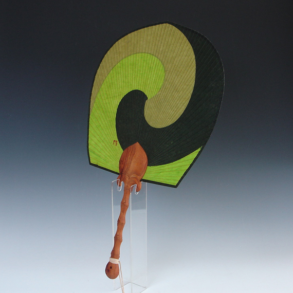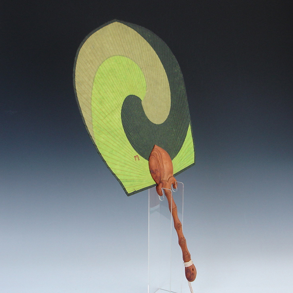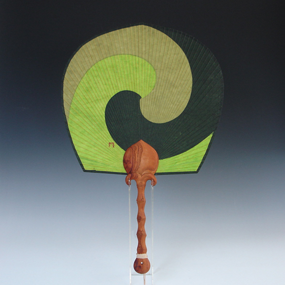 Round Paper Bamboo Fan with Green Yin Yang Design