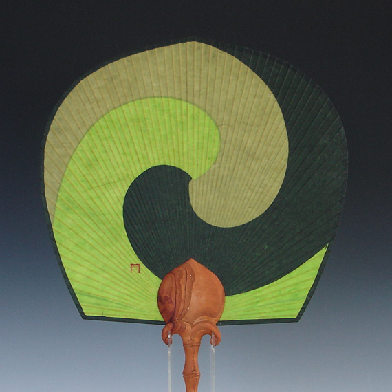This magnificent fan, made of highest-quality Korean mulberry paper, exhibits a beautiful arc created by the fan's outline and the exquisite radiated lines of the bamboo ribs arranged delicately. The beauty of yin yang design is creatively adapted onto the paper. Read More