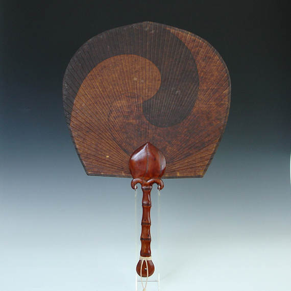 Round Bamboo Lacquered Paper Fan with Yin Yang Design