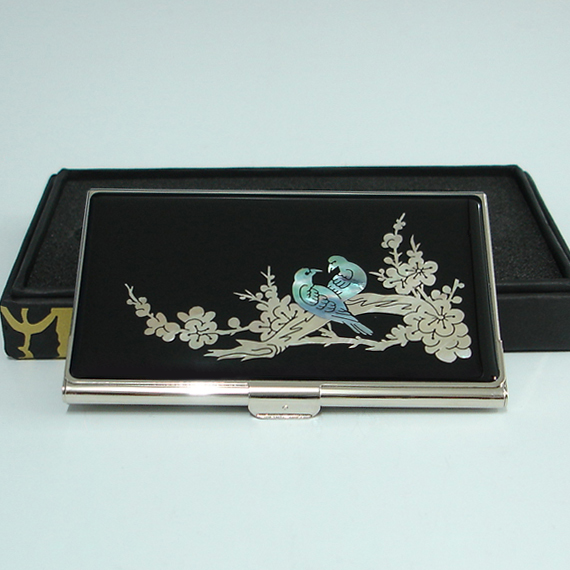Hand Business Card Holder Inlaid with Mother of Pearl Maehwa and Bird