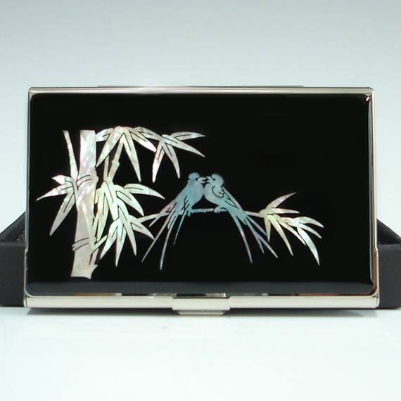 Promotional Business Card Holder with Mother of Pearl Bamboo and Bird