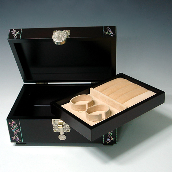 Earring Jewelry Box with Fragrant Wood Lacquer Mother of Pearl Phoenix