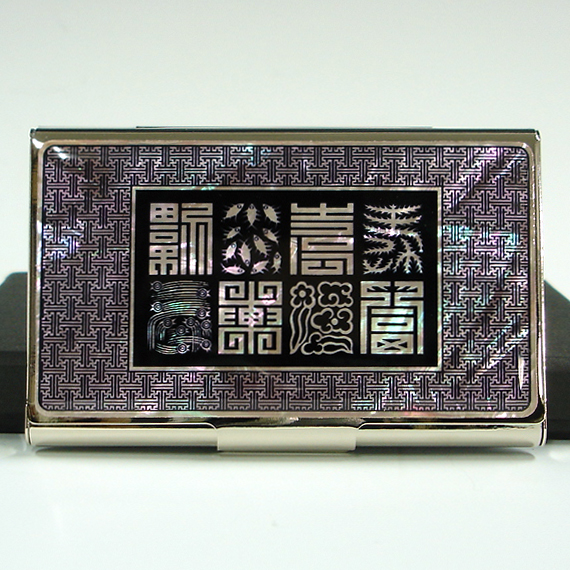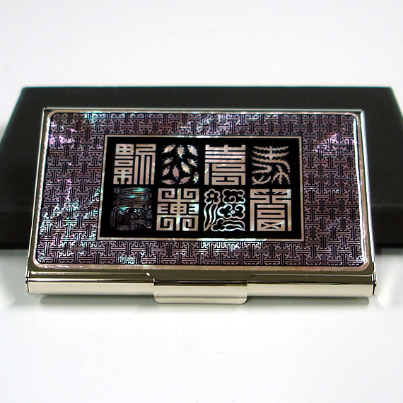 Business Credit Card Holder with Mother of Pearl Auspicious Characters