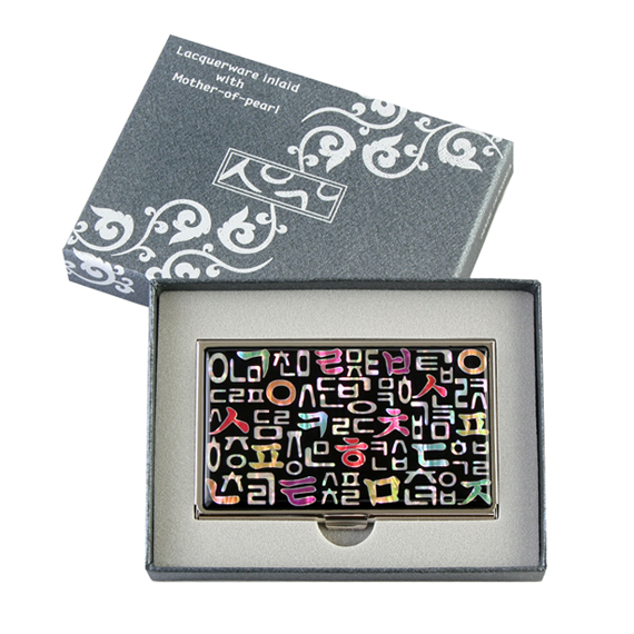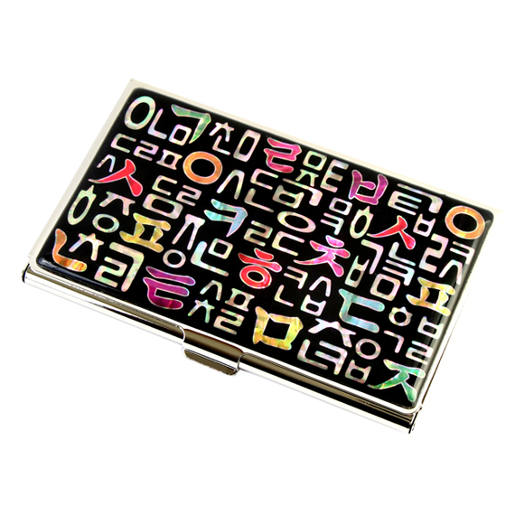 Name Card Holder with Mother of Pearl Korean Alphabet Consonants