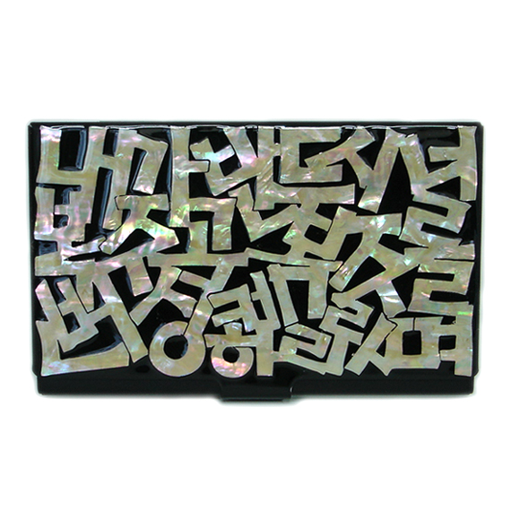 Mens Card Holder inlaid with Mother of Pearl Korean Letter Design