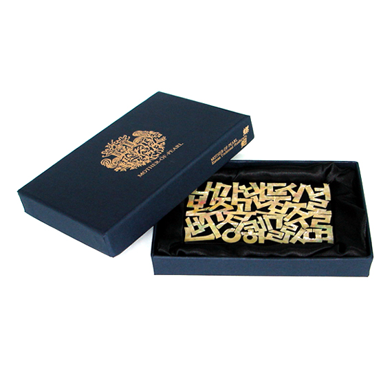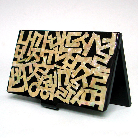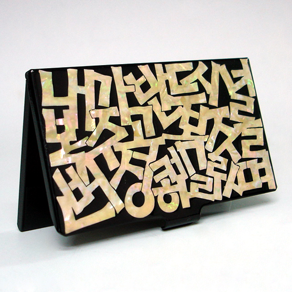 This stylish men's card holder is ornamented with an elegant design of mother of pearl Korean letters. The elaborate adornment with the iridescence of mother of pearl designs makes it an impressive item for collection. The embossed mother of pearl design on the surface is pleasant to the touch. This men's card holder comes with a nice paper gift box.