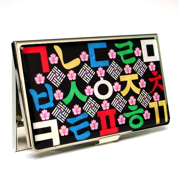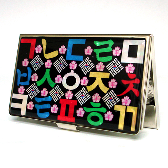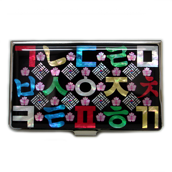 Ladies Credit Card Holder Inlaid with Mother of Pearl Korean Alphabet Design