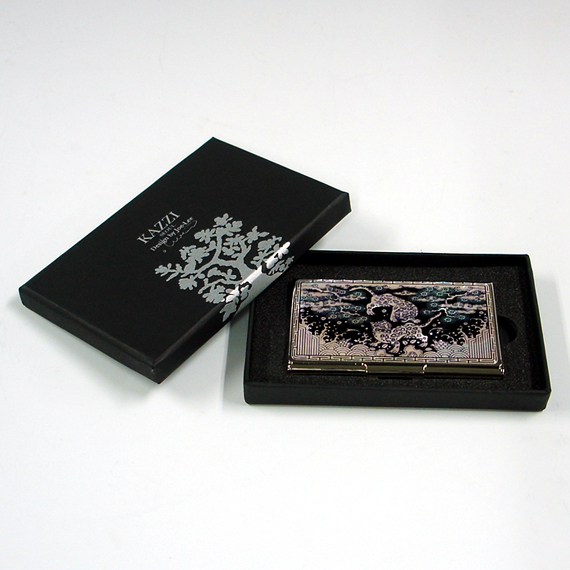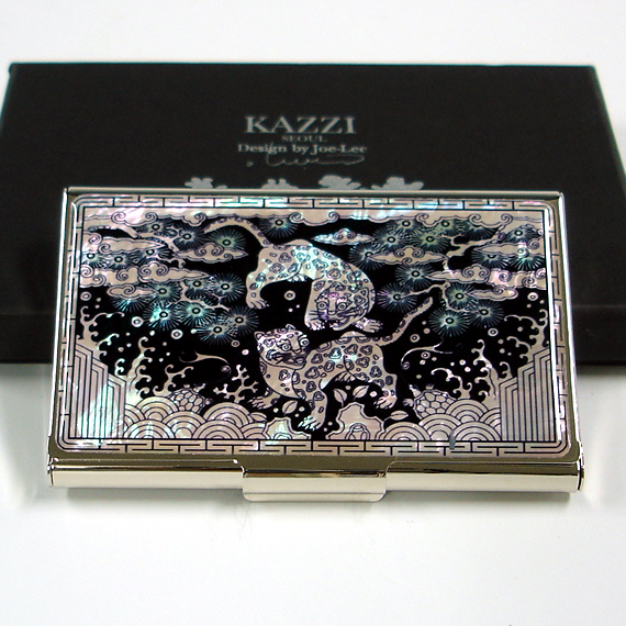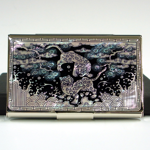 Business Credit Card Holder Inlaid with Mother of Pearl Tiger Design