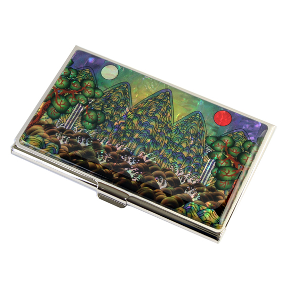 Credit Card Holder Wallet with Mother of Pearl Sun and Moon Design