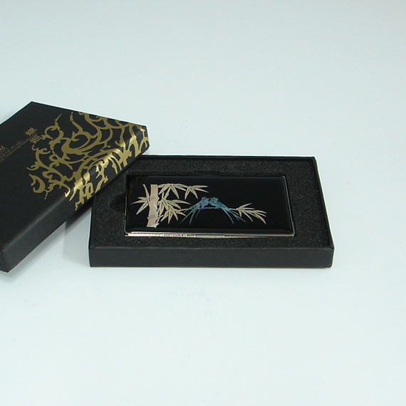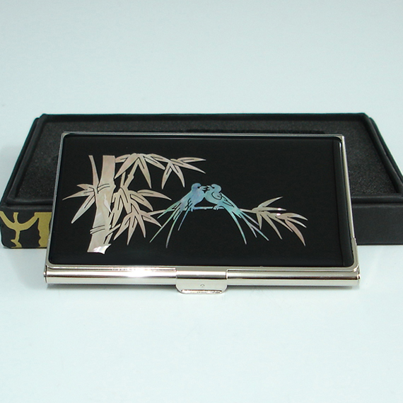 Business Card Holder Inlaid with Mother of Pearl Bamboo and Bird Design