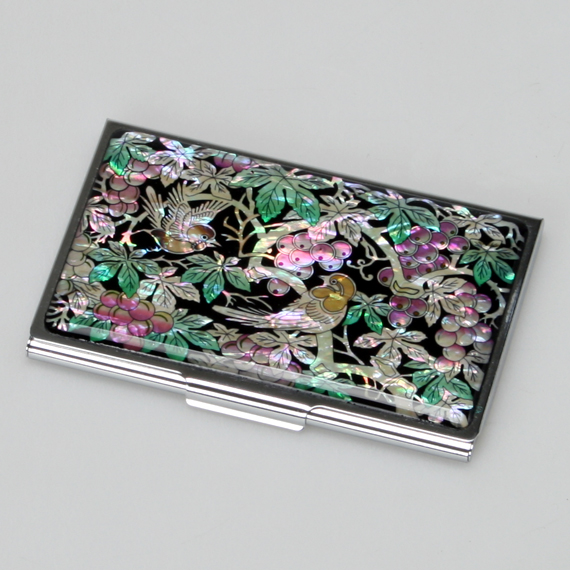 Name Card Holder with Mother of Pearl Grapevine and Birds