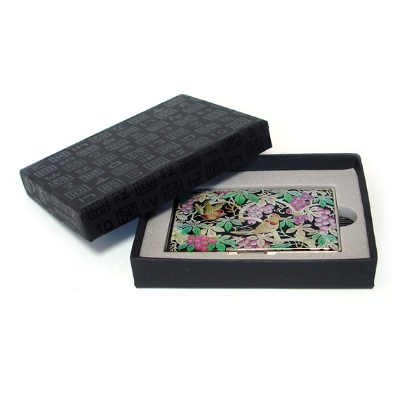 This unique name card holder is ornamented with an intricate mother of pearl design of a pair of birds delighting in an idyllic moment on a grapevine. The elaborate adornment with the iridescence of mother of pearl designs makes it an impressive item for collection. The embossed lattice pattern on the surface, which helps prevent slipping, adds beautiful panache to this card holder. Read More
