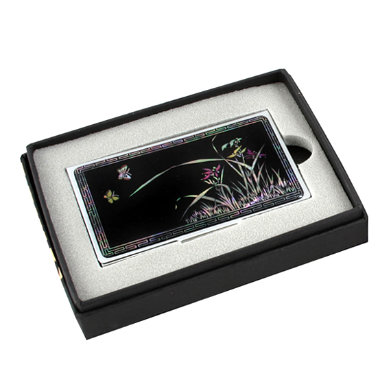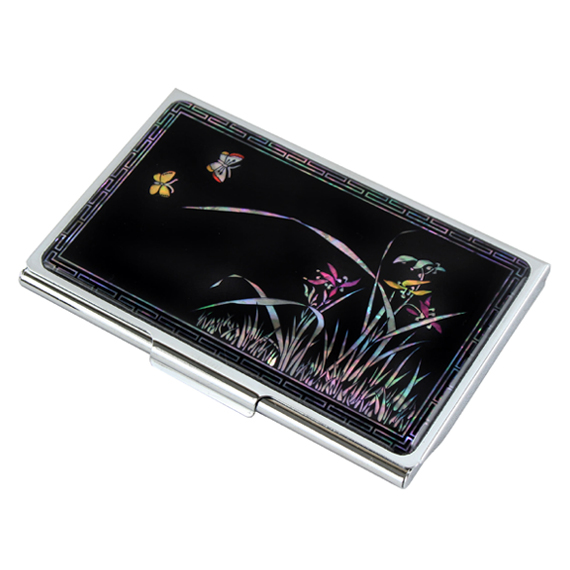 Decorative Business Card Case Inlaid with Mother of Pearl Orchid Design