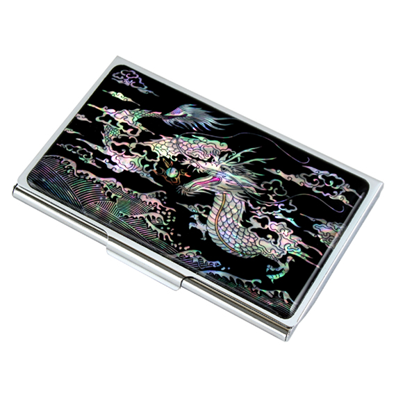 Engraved Card Holder Inlaid with Mother of Pearl Dragon Ball Design
