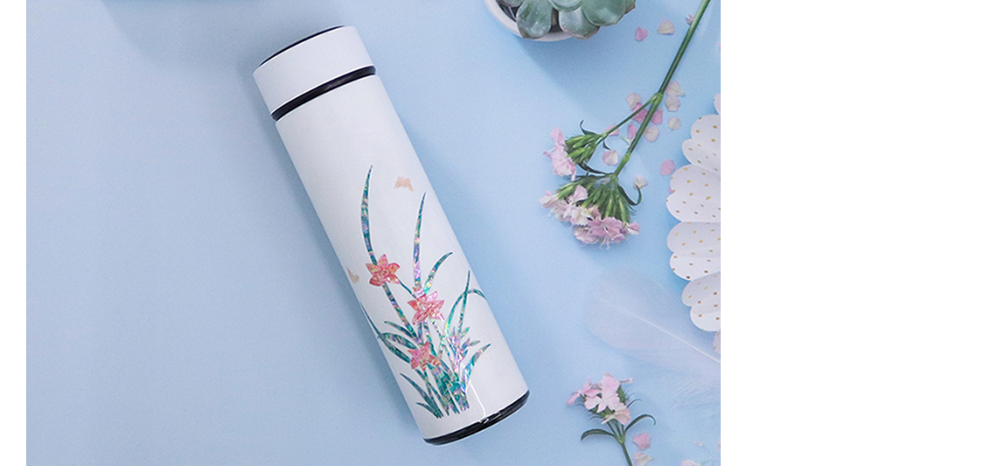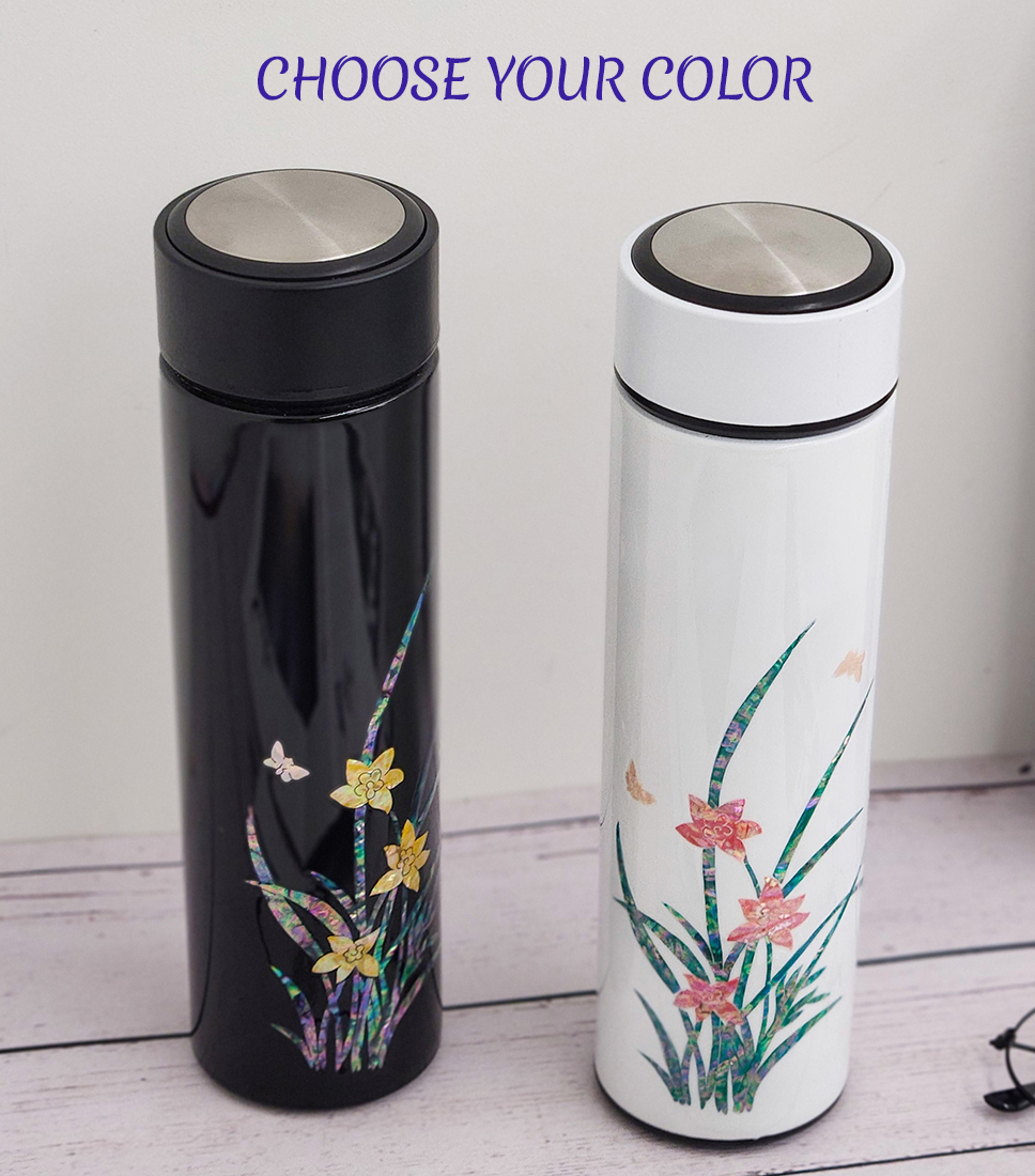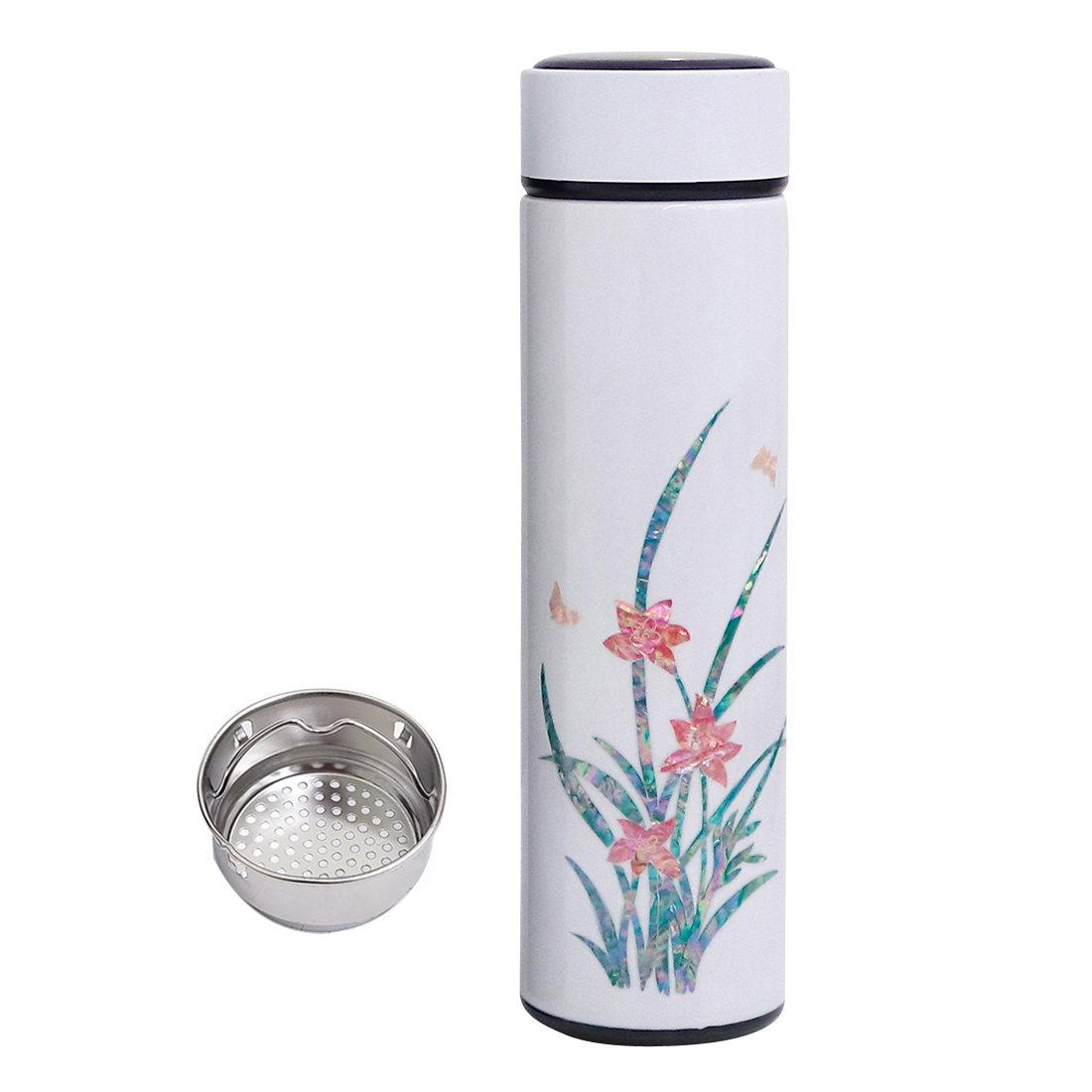 Tea Infuser Water Bottle with Mother of Pearl Design Stainless Steel Thermo