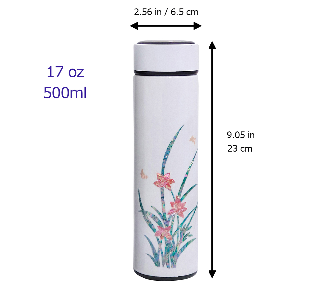 - Beautiful mother of pearl design and premium quality double-walled food grade stainless steel