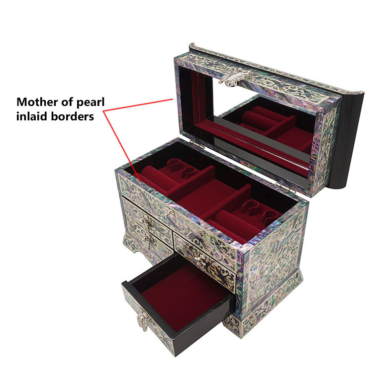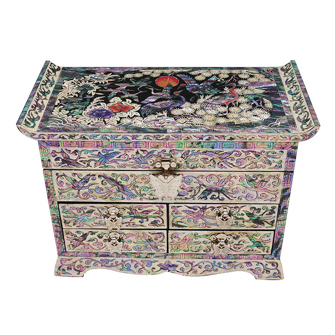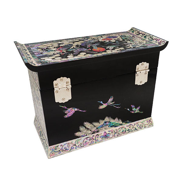 Mother of Pearl Inlay Jewelry Box with Crane and Pine Design