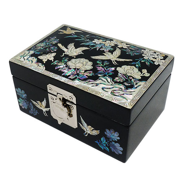 Mother of Pearl Keepsake Box with Black Bird Flower Design