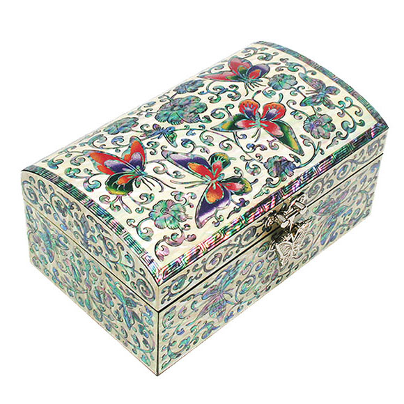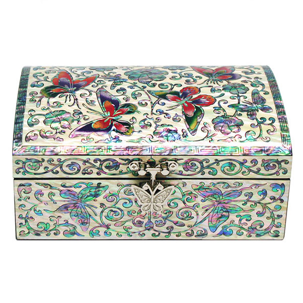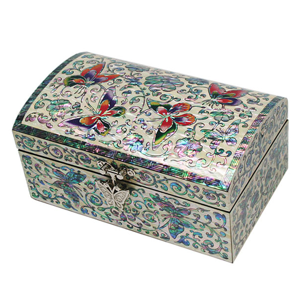 Mother of Pearl Inlay Luxury Pirate Jewelry Treasure Box Chest with Butterfly
