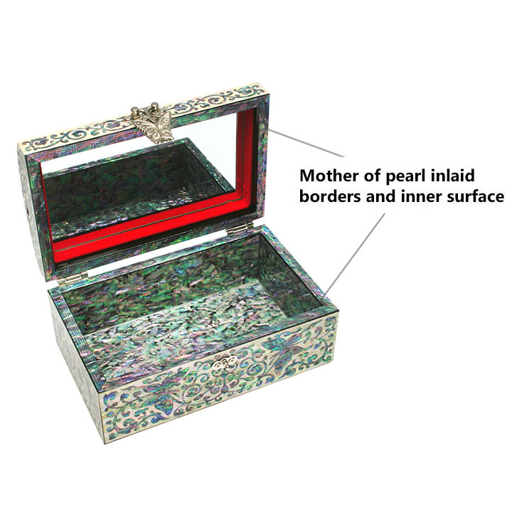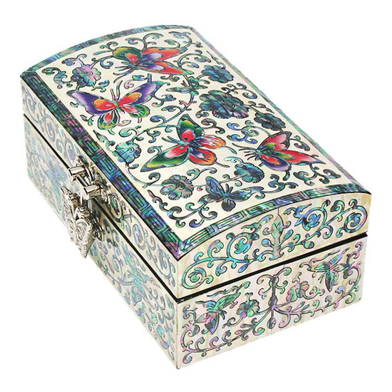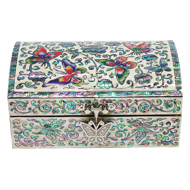 Mother of Pearl Inlay Jewelry Treasure Box Chest with Butterfly Design