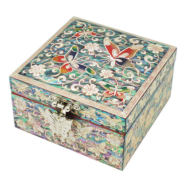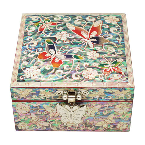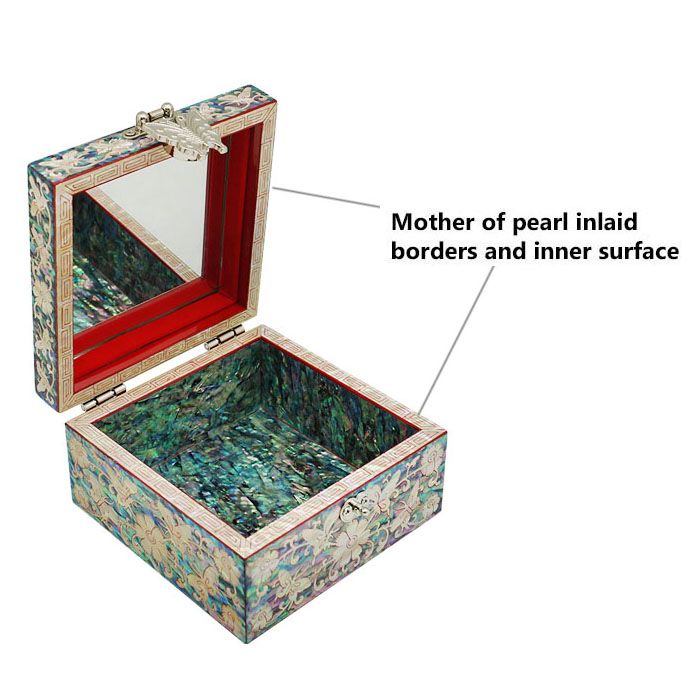 Mother of Pearl Inlay Jewelry Box with Red Butterfly Design