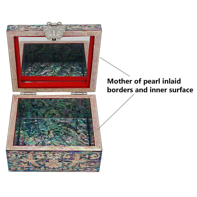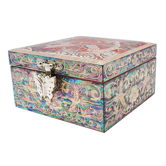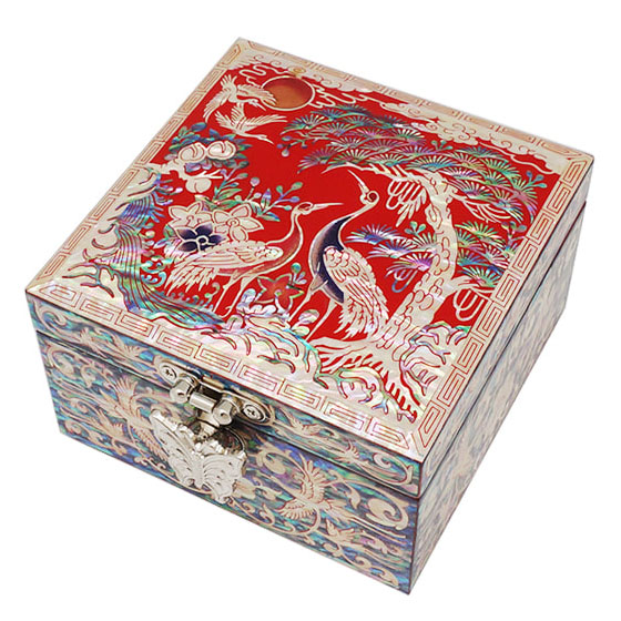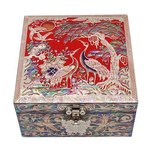 Mother of Pearl Inlay Jewelry Trinket Box with Crane Pine Tree
