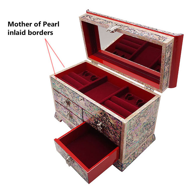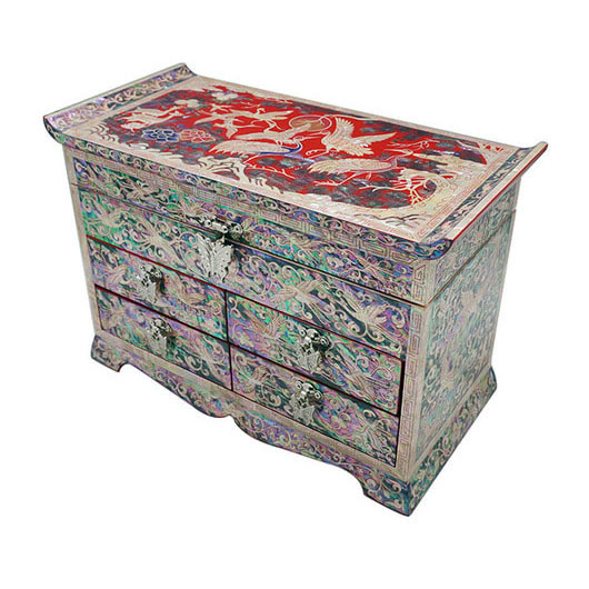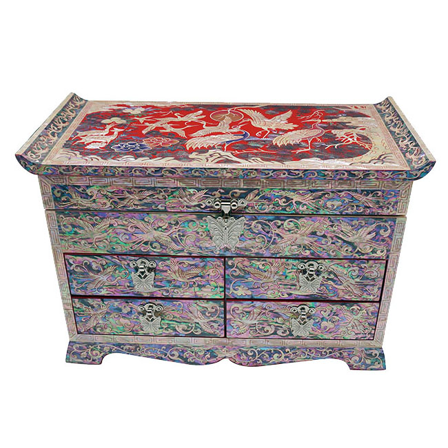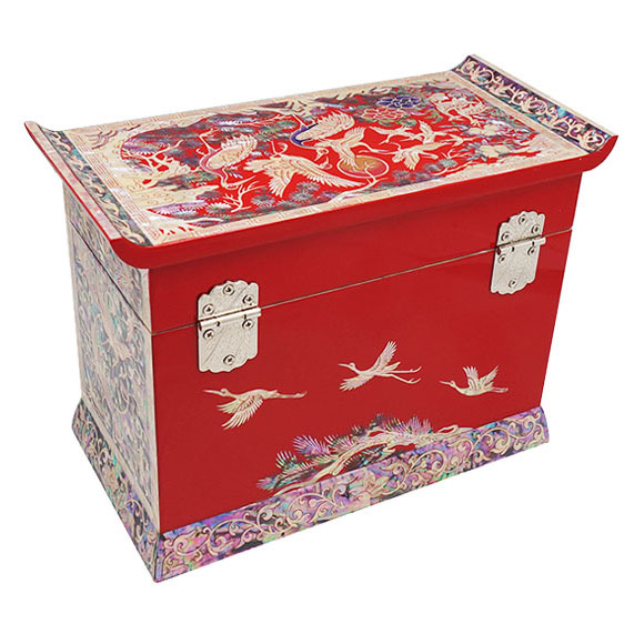 Mother of Pearl Display Jewelry Box Chest with Crane Pine