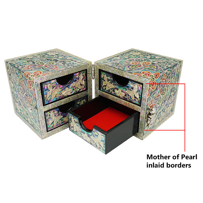 Mother of Pearl Twin Cubic Secret Jewelry Box with Butterfly Arabesque