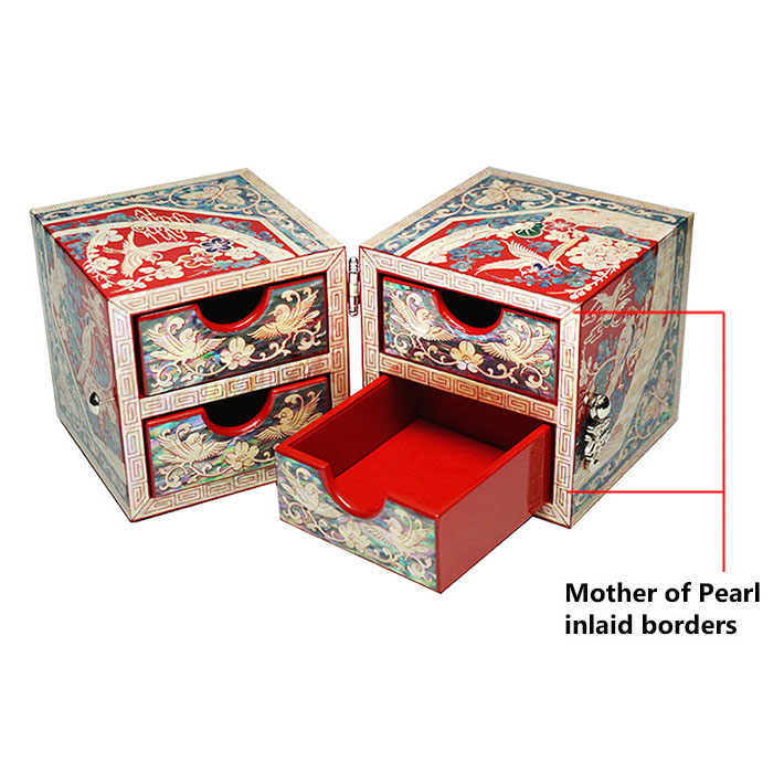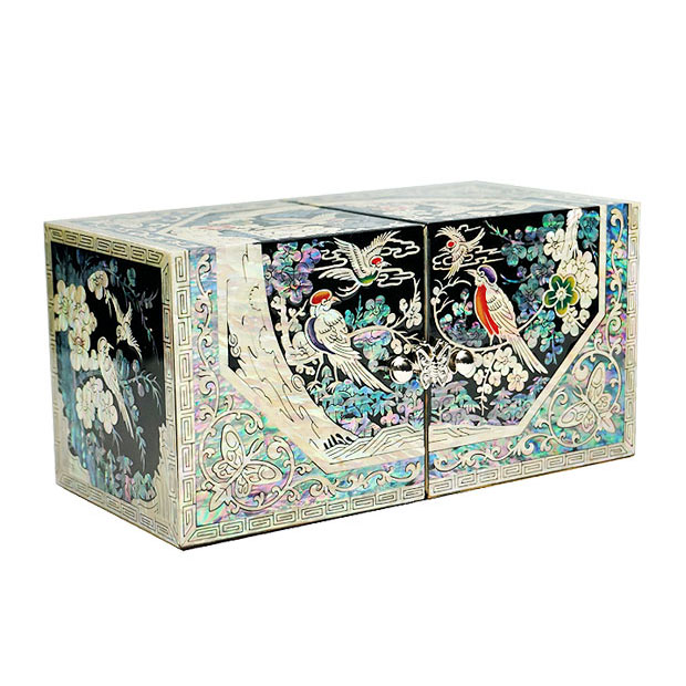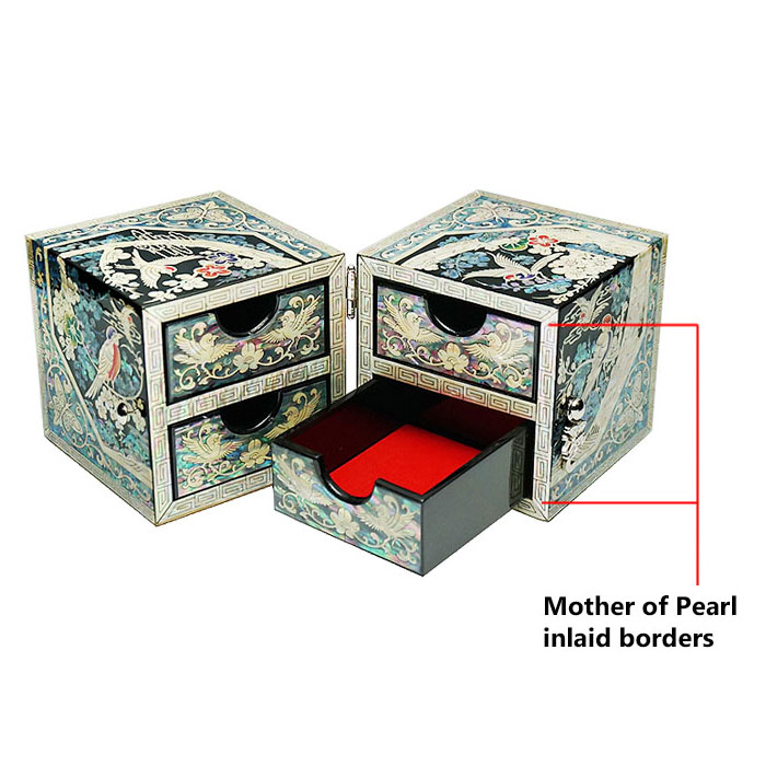 Mother of Pearl Twin Cubic Secret Jewelry Box with Bird Flower