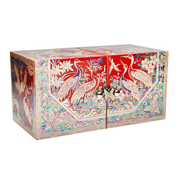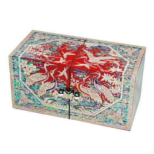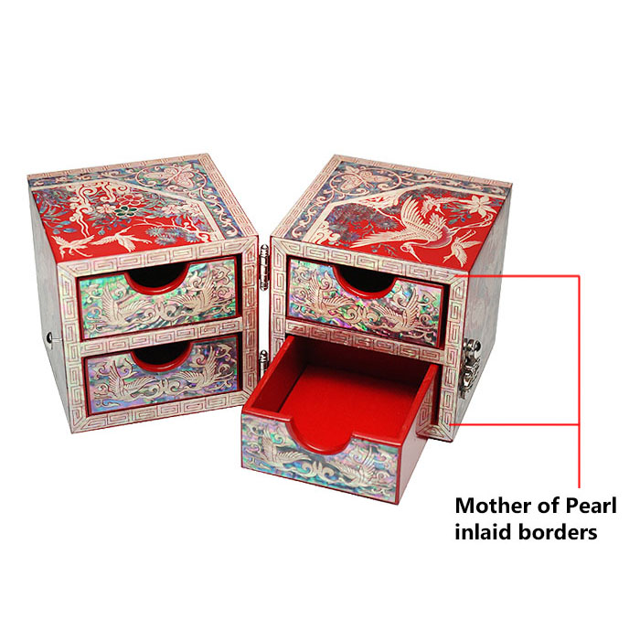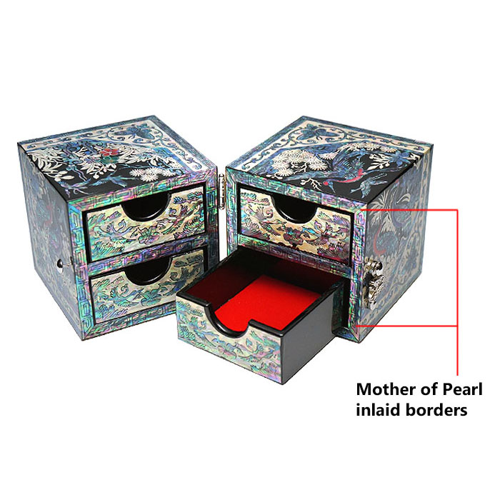Mother of Pearl Twin Cubic Secret Jewelry Box with Crane Flower
