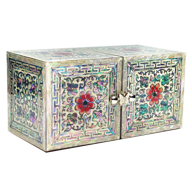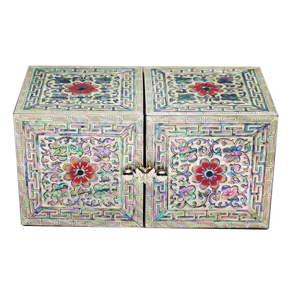 Mother of Pearl Jewelry Box Chest with Arabesque Flower