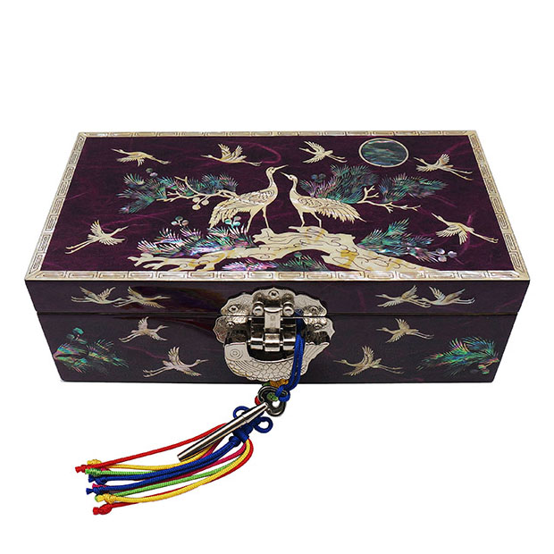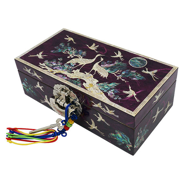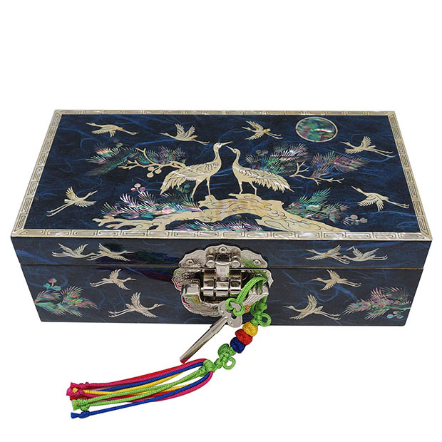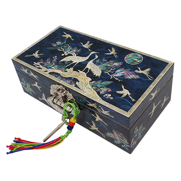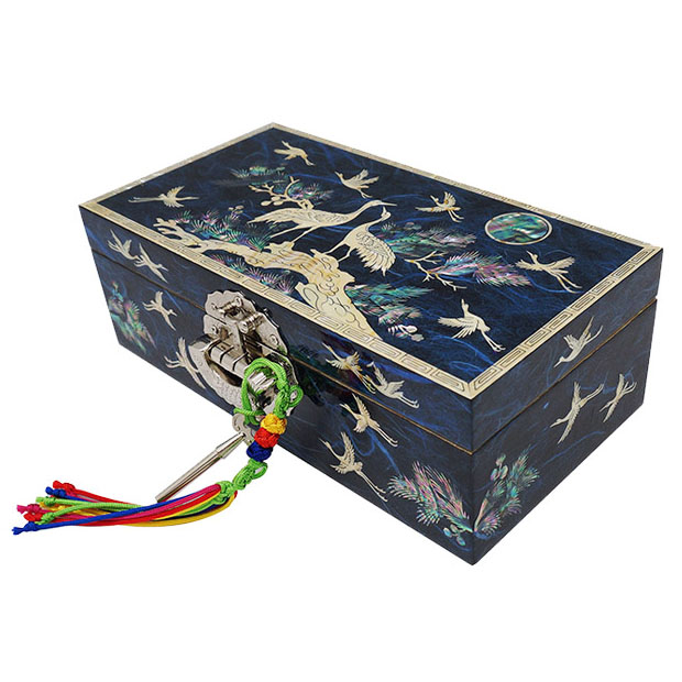 Mother of Pearl Lock Jewelry Box Treasure with Crane Pine Tree