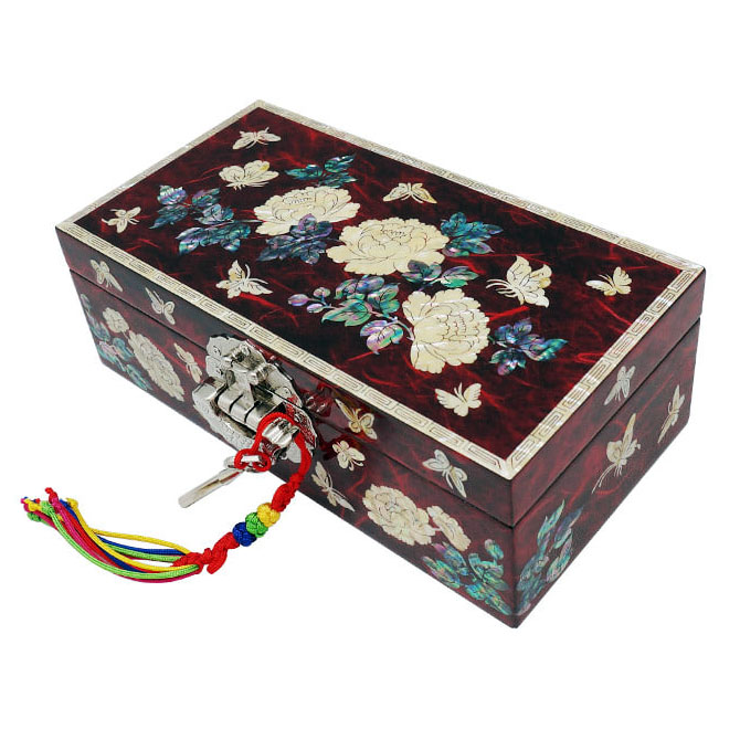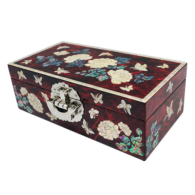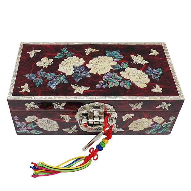 Mother of Pearl Lock Jewelry Box Treasure Case with Peony Butterfly