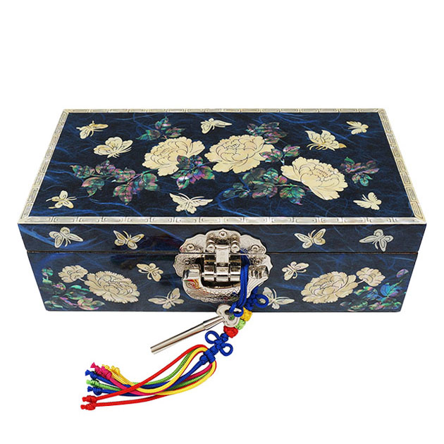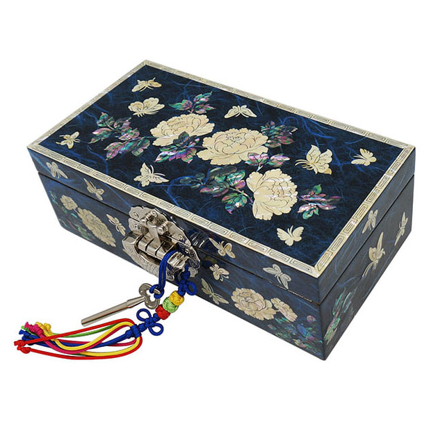 Mother of Pearl Lock and Key Jewelry Box Treasure Case with Peony
