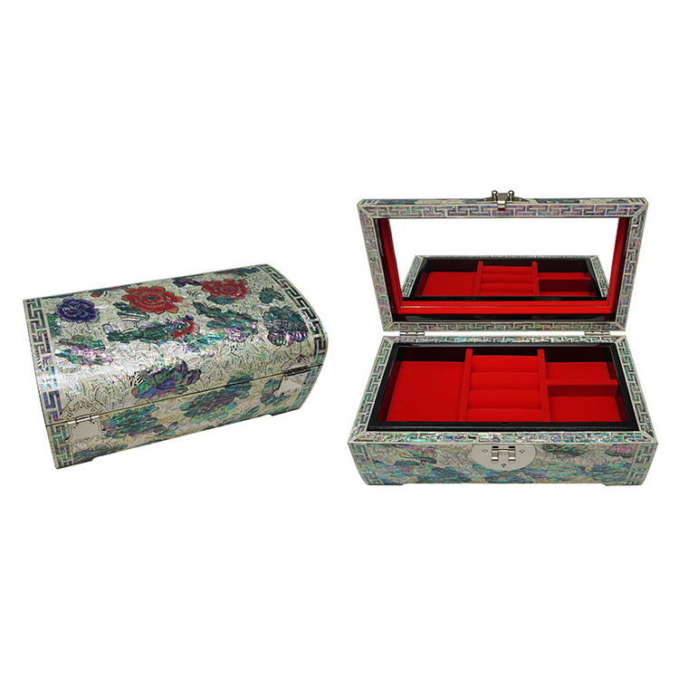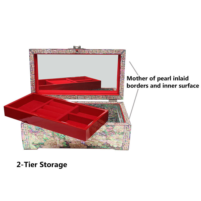 Mother of Pearl 2-Tier Lock Jewelry Box Ring Case with Peony