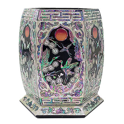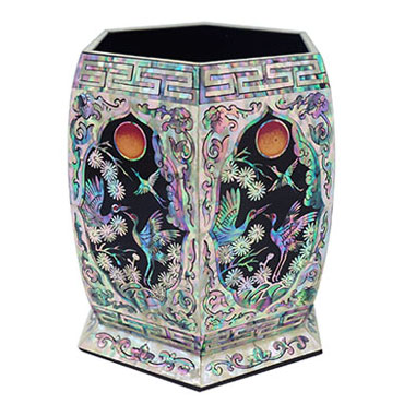 Mother of Pearl Hexagonal Pen Holder with Bird and Moon Design