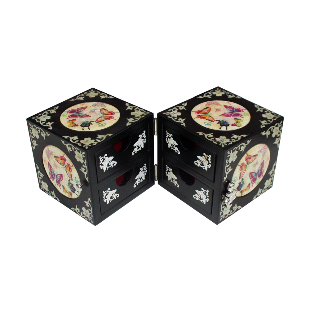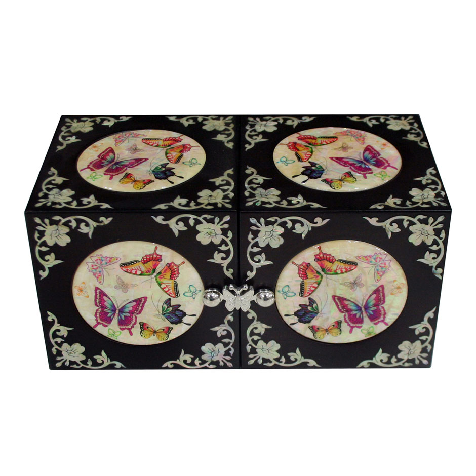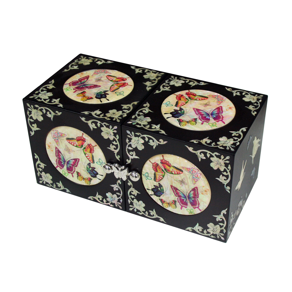 Mother of Pearl Twin Cubic Jewelry Box with Butterfly and Flower Design