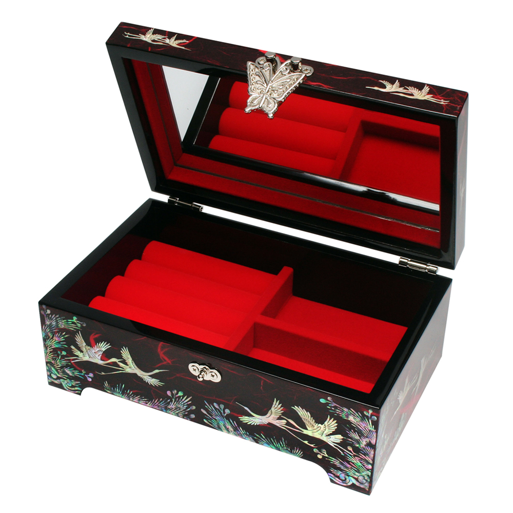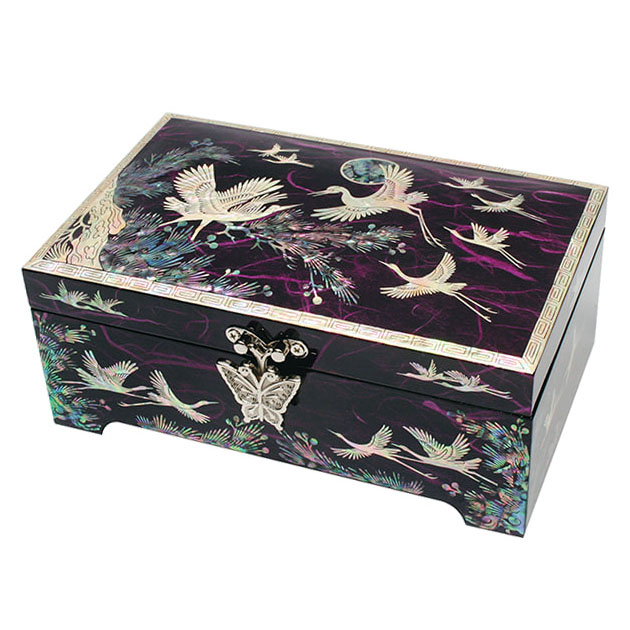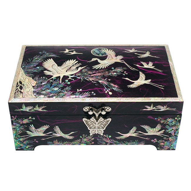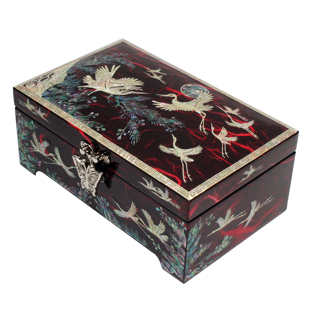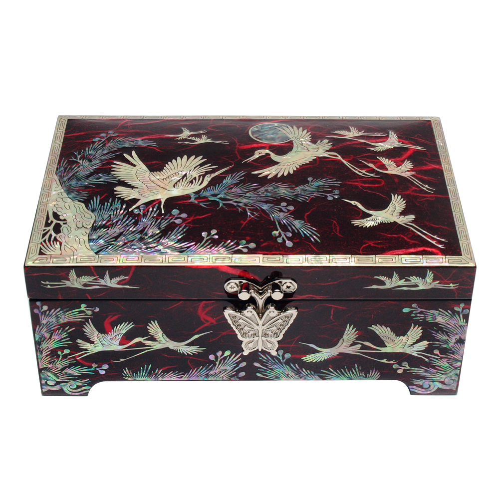 Mother of Pearl Jewelry Box with Red Pine and Cranes