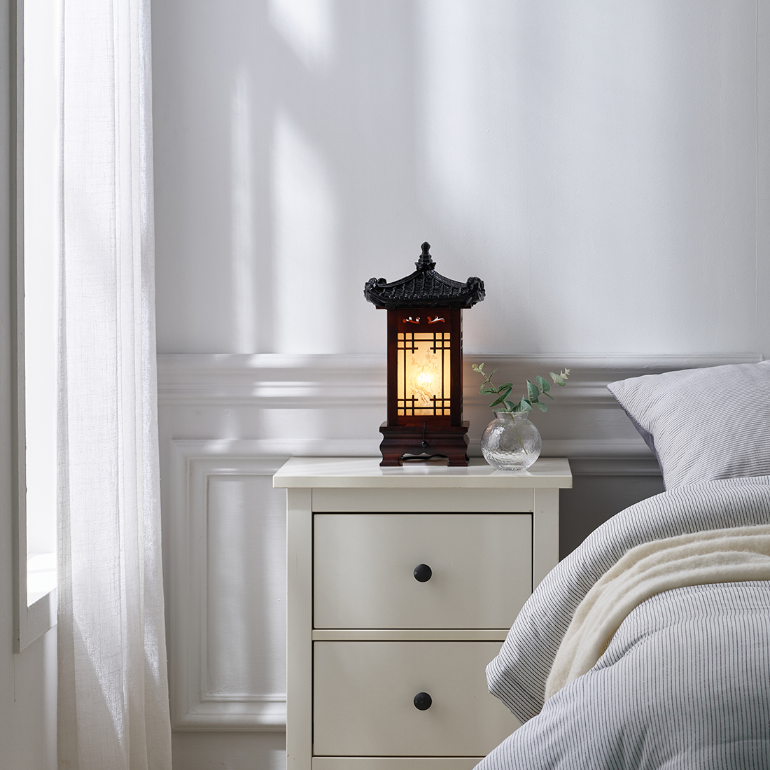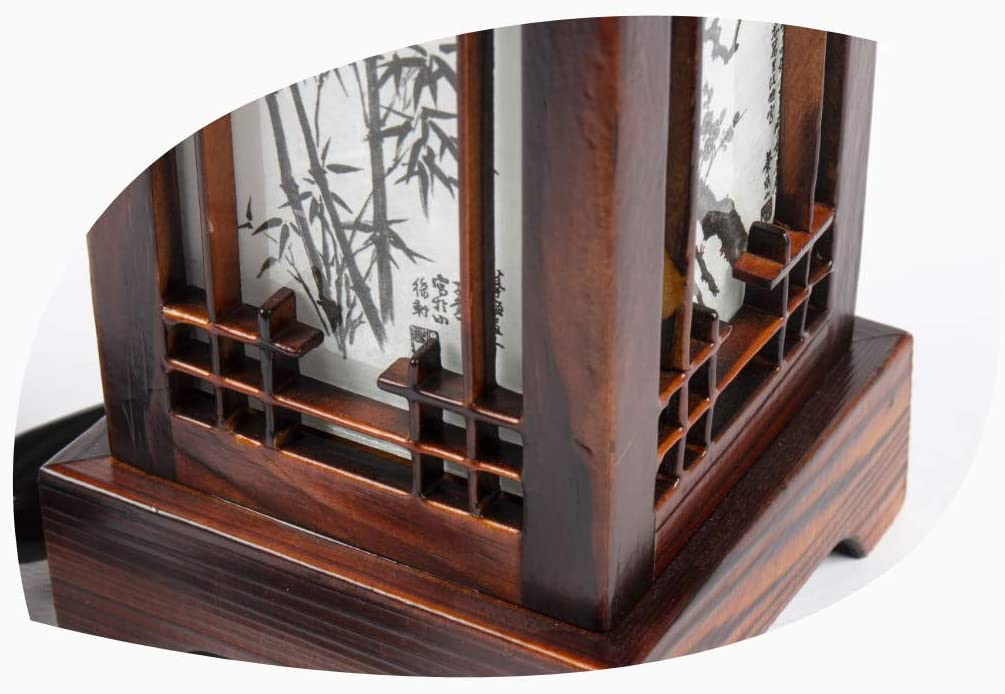 Bedside Lamp with Wood Shade Traditional Korean Roof and Window