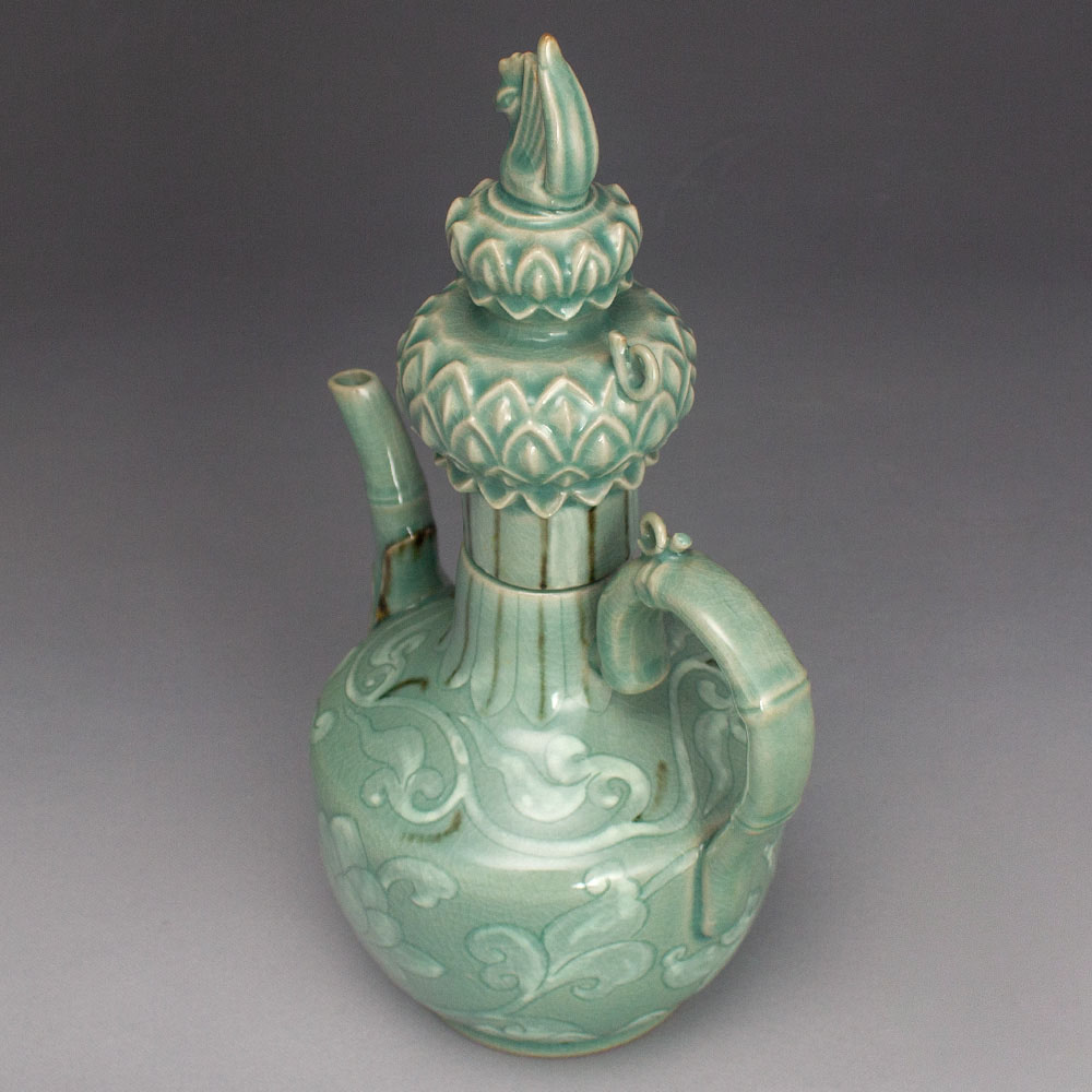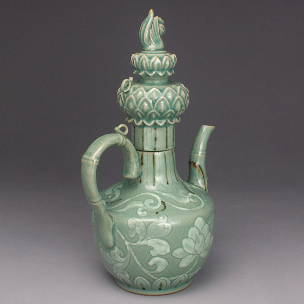 Celadon Porcelain Jug with Phoenix Lid and Lotus Leaf Design