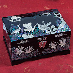 Korean lacquer ware inlaid with mother of pearl is renowned world over with its ingenuity to retrieve the iridescent color from the abalone shell and its unique inlaying techniques to create such extraordinarily splendid and exquisite mother of pearl motifs into the surface of hard wood.